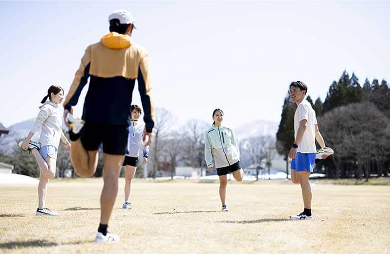 基礎体力の向上を目指します。長距離のイージーランやヒルトレーニングなどを行います。また、柔軟性やバランスを高めるストレッチなどの補強トレーニングも取り入れます。また怪我をしない効率的なランニングフォームづくりをします。
